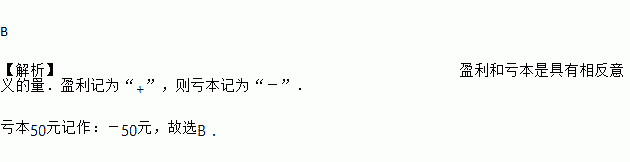 如果盈利70元记作+70元,那么亏本50元记作( )
