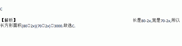 C. (80-2x)(70-2x)=3000 D. 80×70-4x2-(70+80)x=3000
