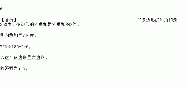 一个多边形的内角和是外角和的2倍,则这个多边形的边数为______.