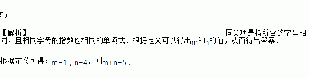 若单项式5x4y和5xnym是同类项,则m+n的值是_______.