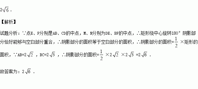 如图,矩形ABCD中,点E、F分别是AB、CD的中点,连接DE和BF,分别取DE、BF的中点M、N,连接AM,CN,MN,若AB=2,BC=2,则图中阴影部分的面积为 .