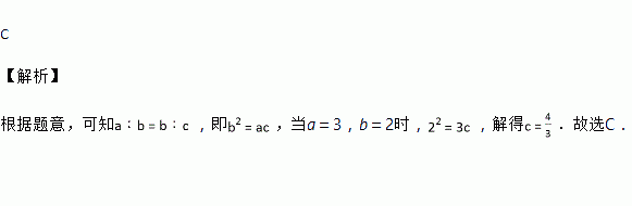 如果a=3,b=2,且b是a和c的比例中项,那么c=( )