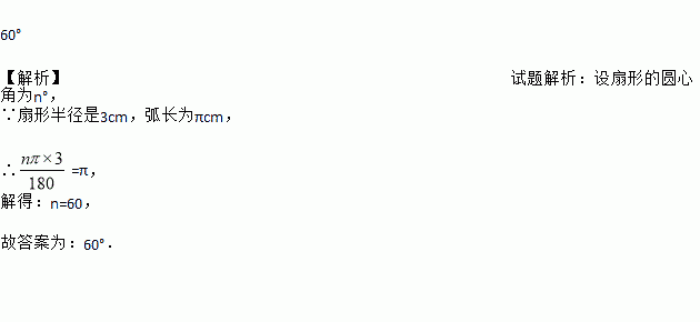 扇形半径为3cm,弧长为cm,则扇形圆心角的度数为___________________.