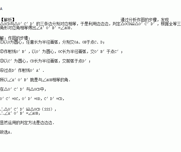 用直尺和圆规作一个角等于已知角的示意图如右,则说明∠A′O′B′=∠AOB的依据是( )