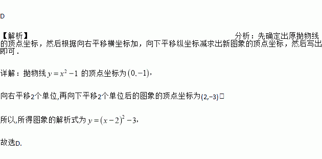 把抛物线y=x2﹣1先向右平移2个单位,再向下平移2个单位,可得抛物线( )