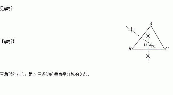 (本题满分分)如图,已知,用尺规作出外心.(保留作图痕迹,不写作法)