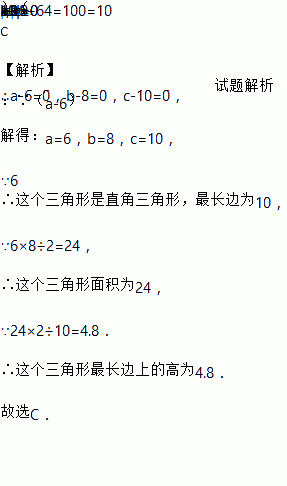 已知a,b,c是三角形的三边长,如果满足(a-6)2++|c-10|=0,那么下列说法中不正确的是( )