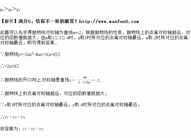 已知点(1,y1)、(﹣2,y2)、(﹣4,y3)都是抛物线y=﹣2ax2﹣8ax+3(a<0)图象上的点,则y1,y2,y3的大小关系是_____