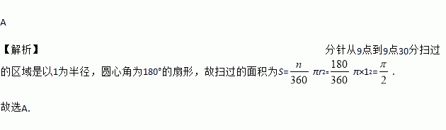 钟面上的分针的长为1,从9点到9点30分,分针在钟面上扫过的面积是( )