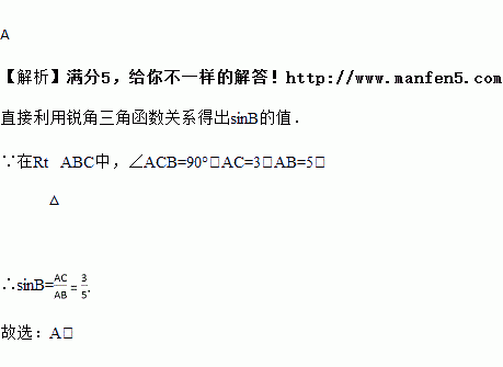 如图,在Rt△ABC中,∠ACB=90°,如果AC=3,AB=5,那么sinB等于( )