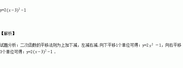 如果将二次函数y=2x2的图象沿y轴向下平移1个单位,再向右平移3个单位,那么所得图象的函数解析式是___