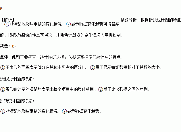某商店一周中每天卖出的计算器个数分别是15、13、17、18、21、26、31,为了反映这一周所售计算器的变化情况,应制作的统计图是( )