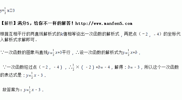 已知一次函数的图象与直线y=x+3平行,并且经过点(﹣2,﹣4),则这个一次函数的解析式为_____.