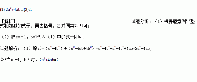 (2)当a=-1,b=0时,求被捂住的多项式的值,