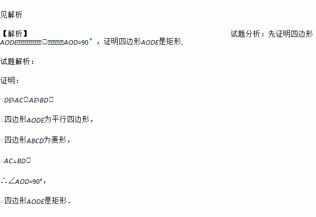 如图,菱形ABCD的对角线AC,BD相交于点O,且DE∥AC,AE∥BD.求证:四边形AODE是矩形.