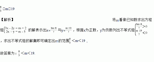 若关于x,y的二元一次方程组中x的值为正数,y的值为负数,则m的取值范围为____________.
