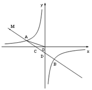 如图,一次函数的图象与反比例函数的图象交于两点,与轴、轴分别交于C、D两点.已知: ,点B的坐标为.