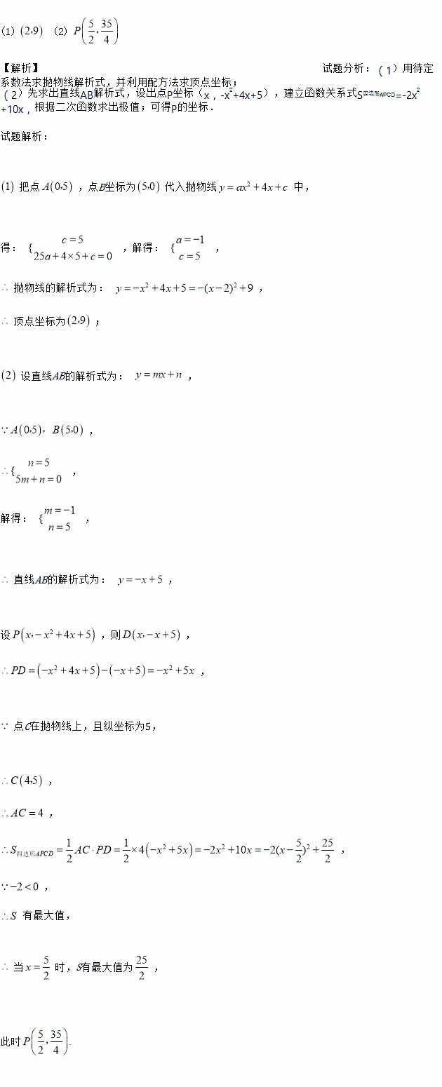 求二次函数解析式及顶点坐标;