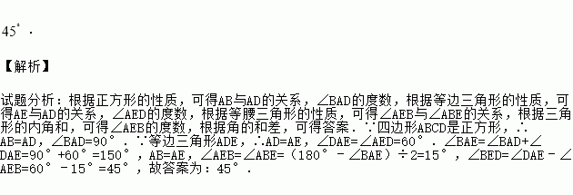 如图,在正方形ABCD的外侧,作等边ADE,则BED的度数是 .