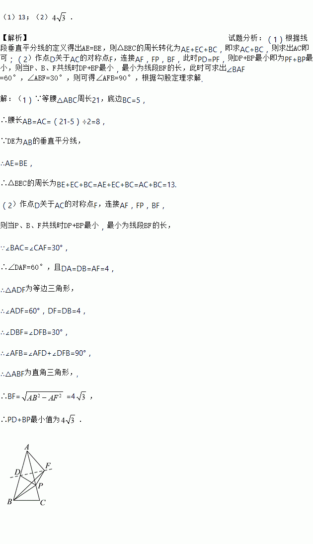 如图所示,等腰的周长为,底边为, 的垂直平分线交于点,交于点.