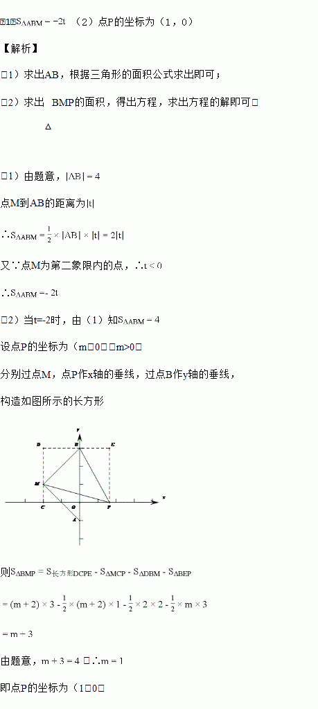(2)当t=﹣2时,在x轴的正半轴上有一点P,使得△BMP的面积与△ABM的面积相等,请求出点P的坐标.