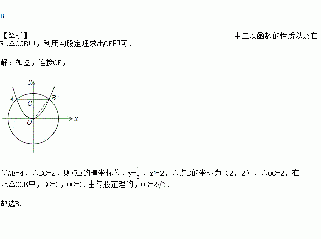 如图,⊙O被抛物线y=x2所截的弦长AB=4,则⊙O的半径为( )