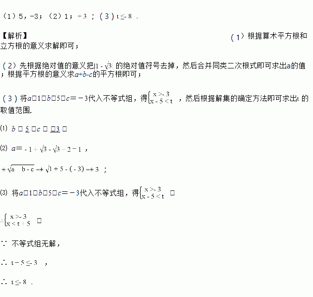 已知:a=,,c是-27的立方根.
