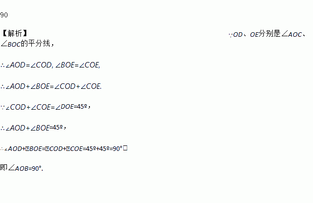 如图7,OD、OE分别是∠AOC、∠BOC的平分线,∠DOE=45º,则∠AOB=______度.