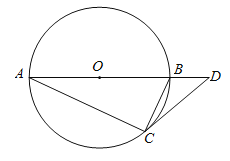 如图,AB为⊙O的直径,点C为⊙O上的一点,过点C作⊙O的切线,交直径AB的延长线于点D,若∠A=25°,则∠D的度数是( )