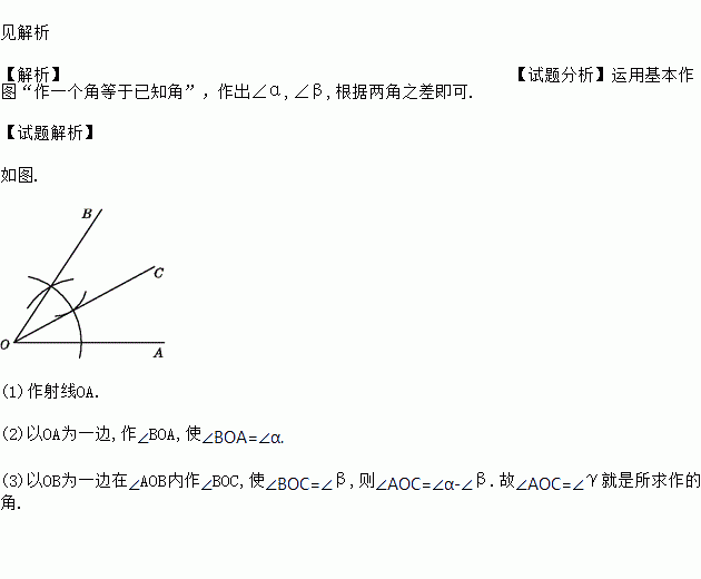 如图,已知∠α,∠β且∠α>∠β.求作∠γ,使∠γ=∠α-∠β.