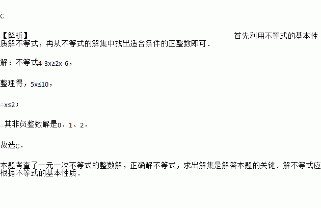 不等式4-3x≥2x-6的非负整数解有( )
