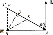 (2)以点B为圆心,200海里为半径画圆交AC于E、F(如图)