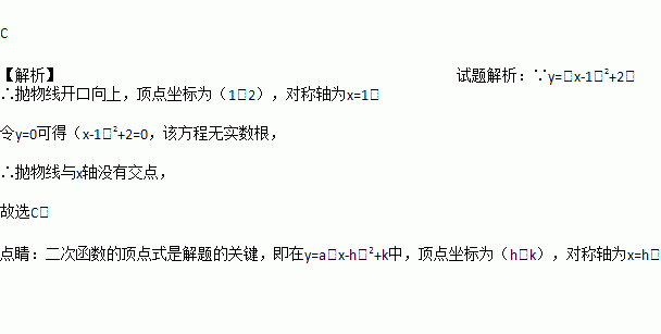 A. 开口向下; B. 顶点坐标(-1,2); C. 对称轴是x =1; D. 与x轴有两个交点