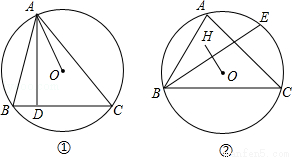 (2)运用以上结论解决问题:如图②,H为△ABC的垂心,若∠ABC的平分线BE⊥HO,⊙O的半径为10,求弦AC的长.