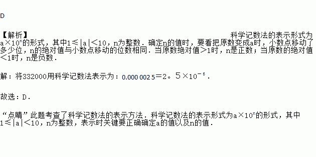 PM2.5是指大气中直径小于或等于0.000 002 5 m的颗粒物,将0.000 002 5用科学记数法表示为( )