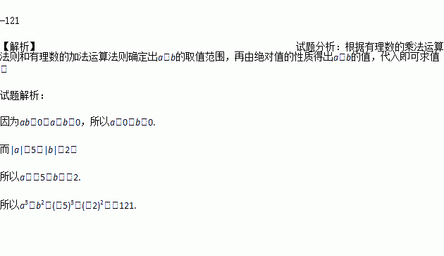 若ab>0,a+b<0,且|a|=5,|b|=2,则a3+b2的值是多少?