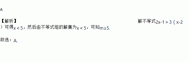 A 【解析】解不等式2x-1>3(x-2)可得x<5,然后由不等式组的解集为x<5,可知m≥5. 故选:A.