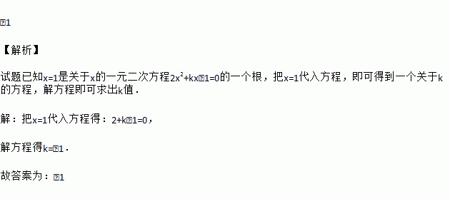已知 x=1 是关于 x 的一元二次方程 2x2+kx﹣1=0 的一个根,则实数 k的值是__________.