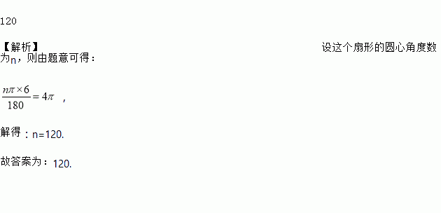 一个扇形的弧长是4 ,半径是6,则这个扇形的圆心角度数是______.