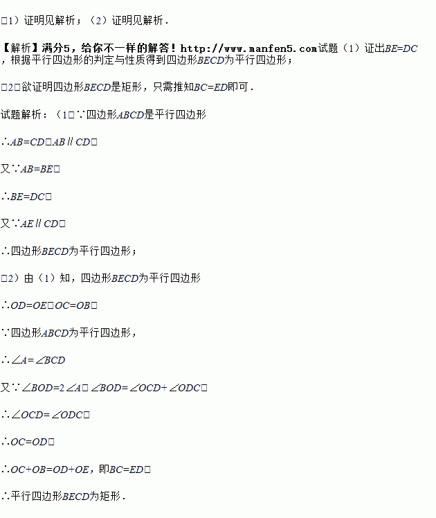 (2)连接BD、CE,若∠BFD=2∠A,求证:四边形BECD是矩形.