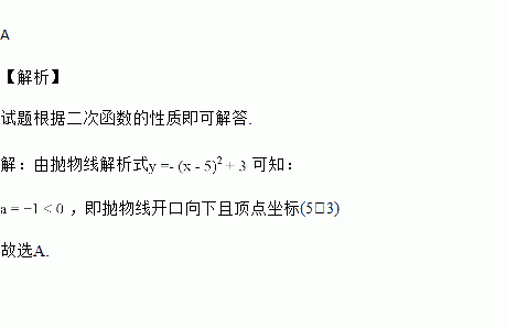 A. 开口向下,顶点坐标(5,3) B. 开口向上,顶点坐标(5,3)
