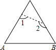 如图,将一等边三角形剪去一个角后,∠1+∠2=________度.