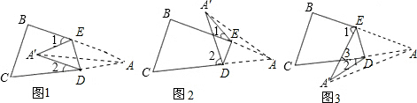 (3)若点A落在四边形BCDE的外部(CD的下方)点A′的位置(如图3),∠A′与∠1,∠2又有怎样的关系?直接写出你的结论.