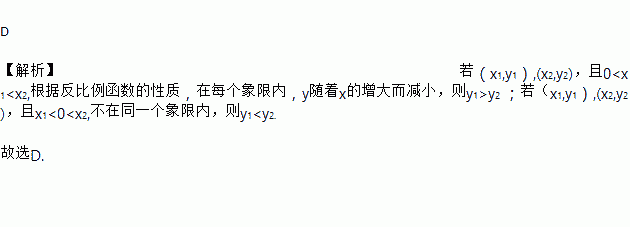 反比例函数图像上的两点为(x1,y1),(x2,y2),且x1<x2,则下列关系成立的是( )
