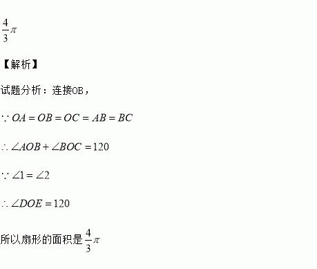 如图,四边形OABC为菱形,点A,B在以O为圆心的弧上,若OA=2,∠1=∠2,求扇形ODE的面积.