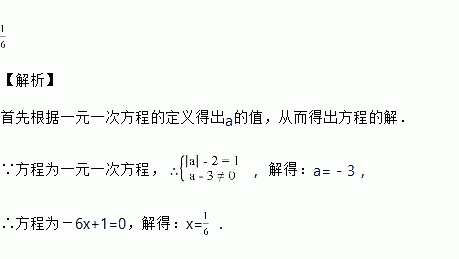 关于x的方程(a-3)x|a|-2+1=0是一元一次方程,则方程的解为_____.