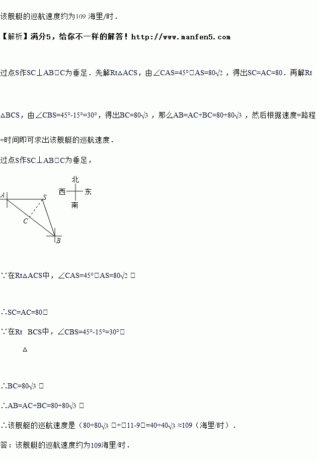 方向,求该舰艇的巡航速度?(结果保留整数)