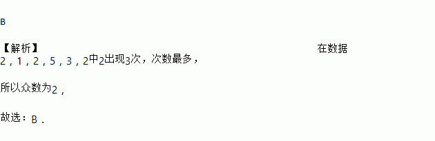 一组数据2,1,2,5,3,2的众数是( )