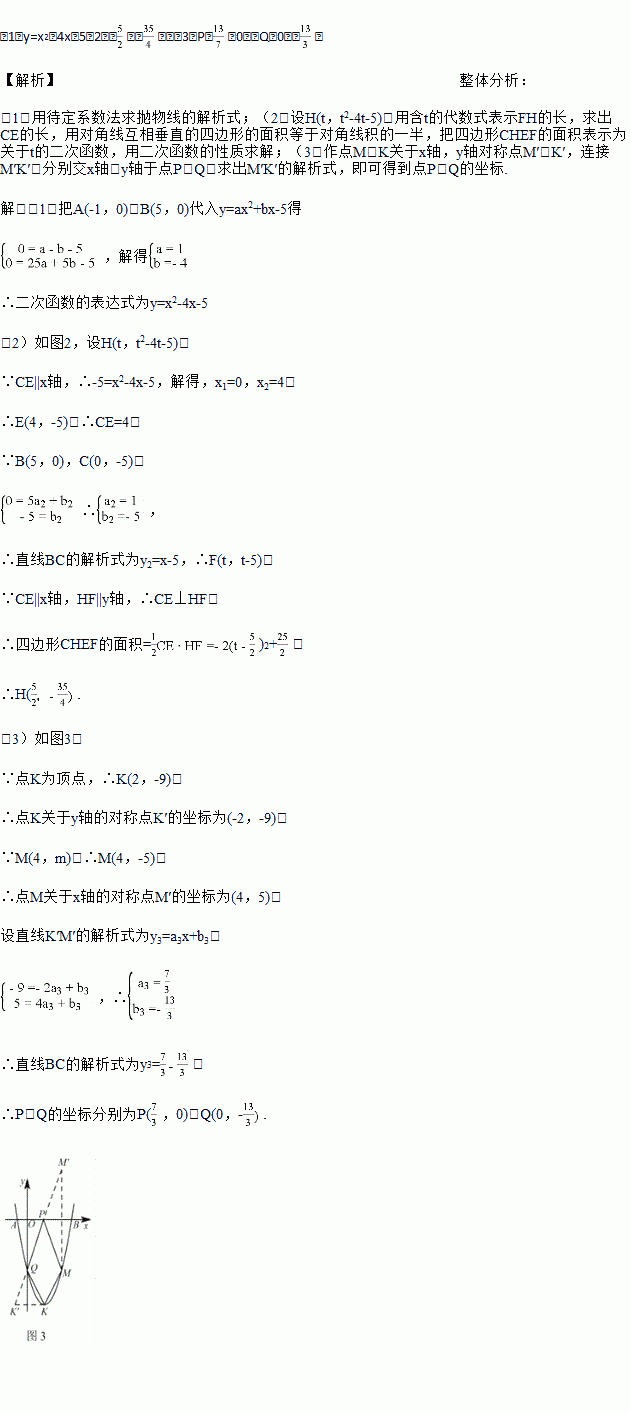(3)若点K为抛物线的顶点,点M(4,m)是该抛物线上的一点,在x轴,y轴上分别找点P,Q,使四边形PQKM的周长最小,求出点P,Q的坐标.