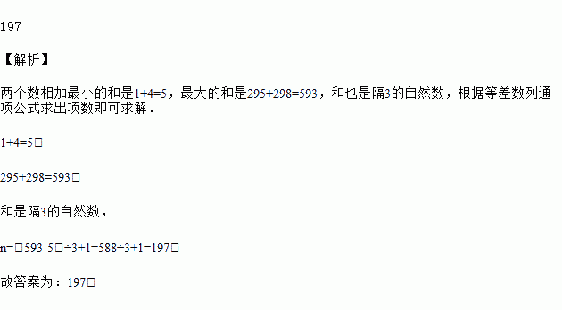 从1,4,7……295,298(隔3的自然数)中任选两个数相加,和的不同值有_____个.